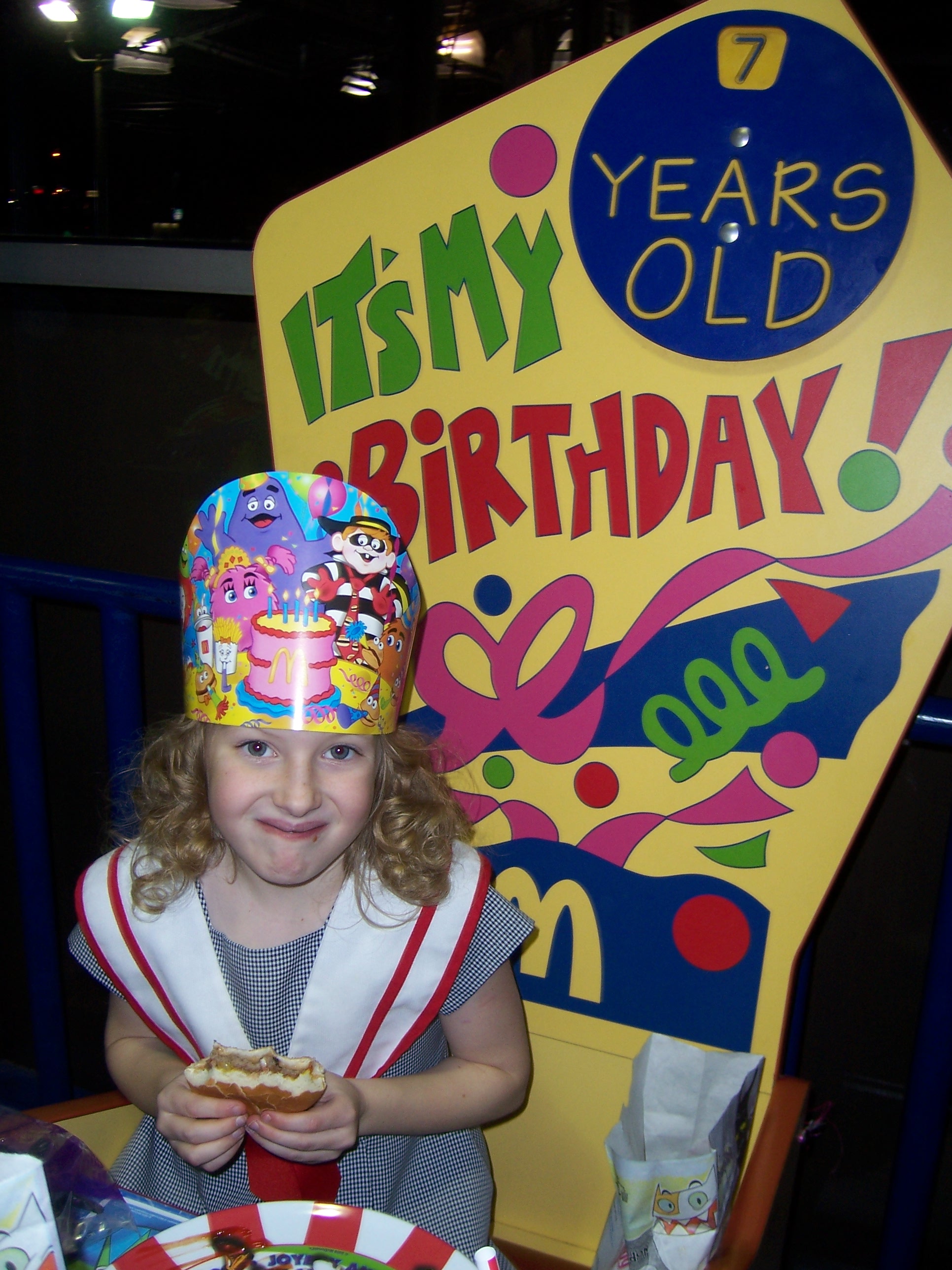 I am 7 years old now! I went to McDonalds for my party and then I got to have a sleep over! It was great. Thank you all for your gifts. I love you guys!
